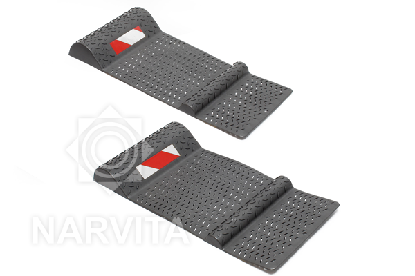 Ratų stabdikliai yra puiki pagalbinė parkavimo priemonė, nes jie sumažina įbrėžimų ir smūgių riziką jūsų transporto priemonėje. Taip yra todėl, kad šios parkavimo kreipiančiosios turi du iškilimus, žyminčius parkavimo vietos galus. Pirmasis iškilimas žymi kilimėlio priekį ir yra pakankamai mažas, kad juo būtų galima pravažiuoti. Antrasis greičio mažinimo kalnelis yra 5,2 cm aukščio ir žymi parkavimo vietos galą. Važiuodami į jį, galite pajusti parkavimo vietos galą nepažeisdami savo transporto priemonės.