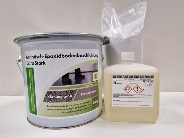 Sudėtis. Vieną pakuotę sudaro 3 komponentai: epoksidinė derva, kietiklis, granulės (~1mm dydžio).