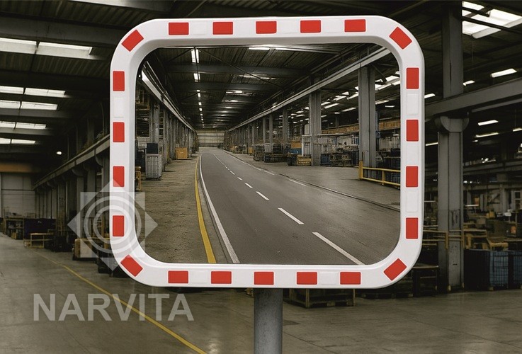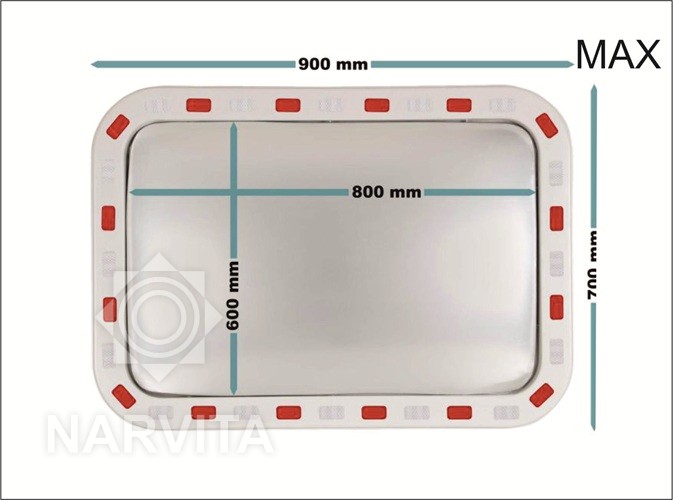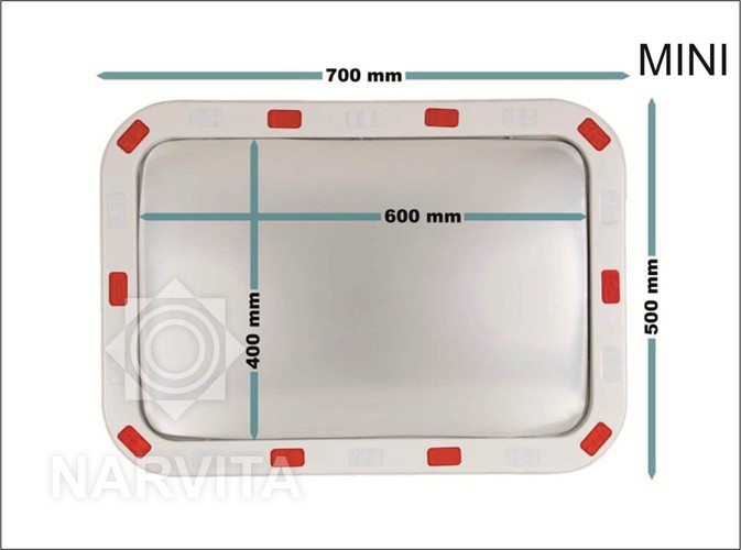 Pagamintas iš smūgiams atsparaus polikarbonato, apsauginis veidrodis atlaiko kasdienio naudojimo krūvį. Veidrodis buvo sukurtas taip, kad atlaikytų ekstremalias oro sąlygas, užtikrinant matomumą visada.Net naktį veidrodis yra aiškiai matomas dėl baltų ir raudonų šviesą atspindinčių juostelių išilgai rėmo. Visos šios savybės daro jį idealiu pasirinkimu norint padidinti saugumą bet kokioje aplinkoje.